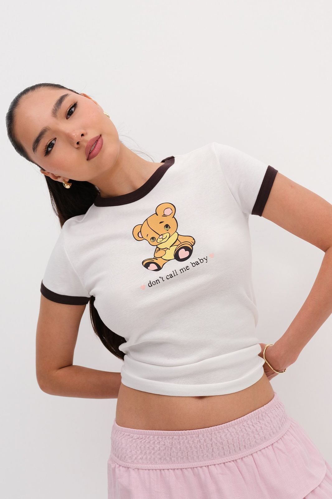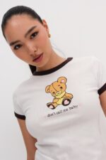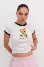 تيشيرت مزين بحواف (بايبينج) وطباعة دب