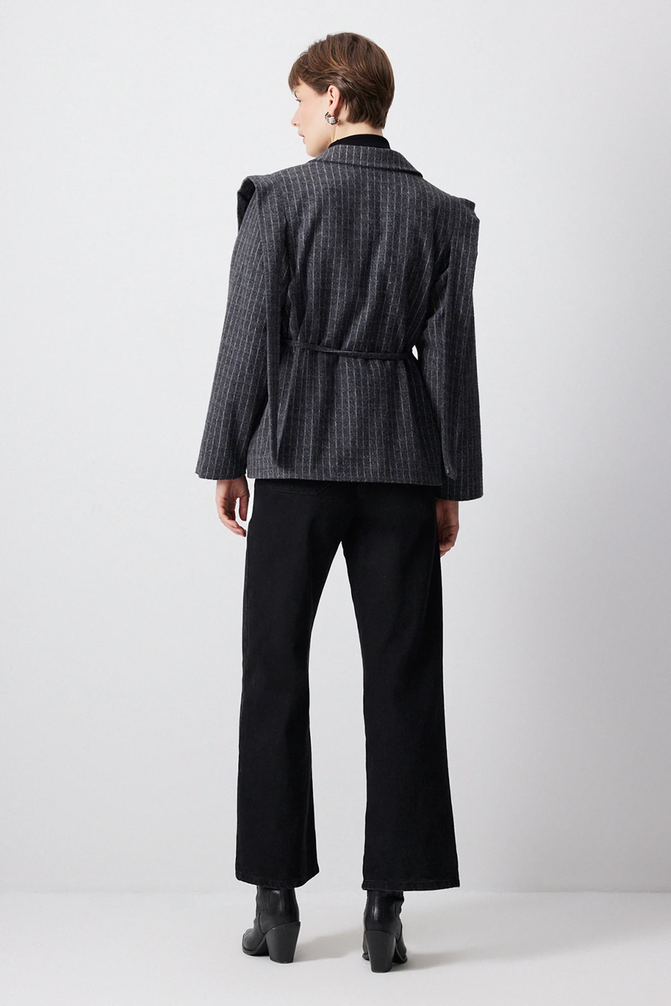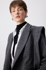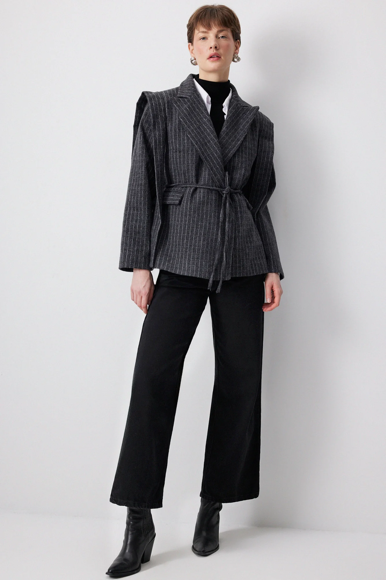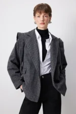 التفاصيل:أكمام طويلة. خطوط متباينة. شريط ربطة أمامية.