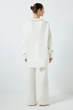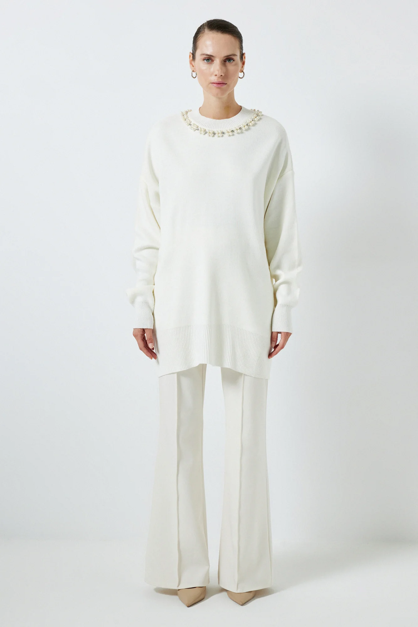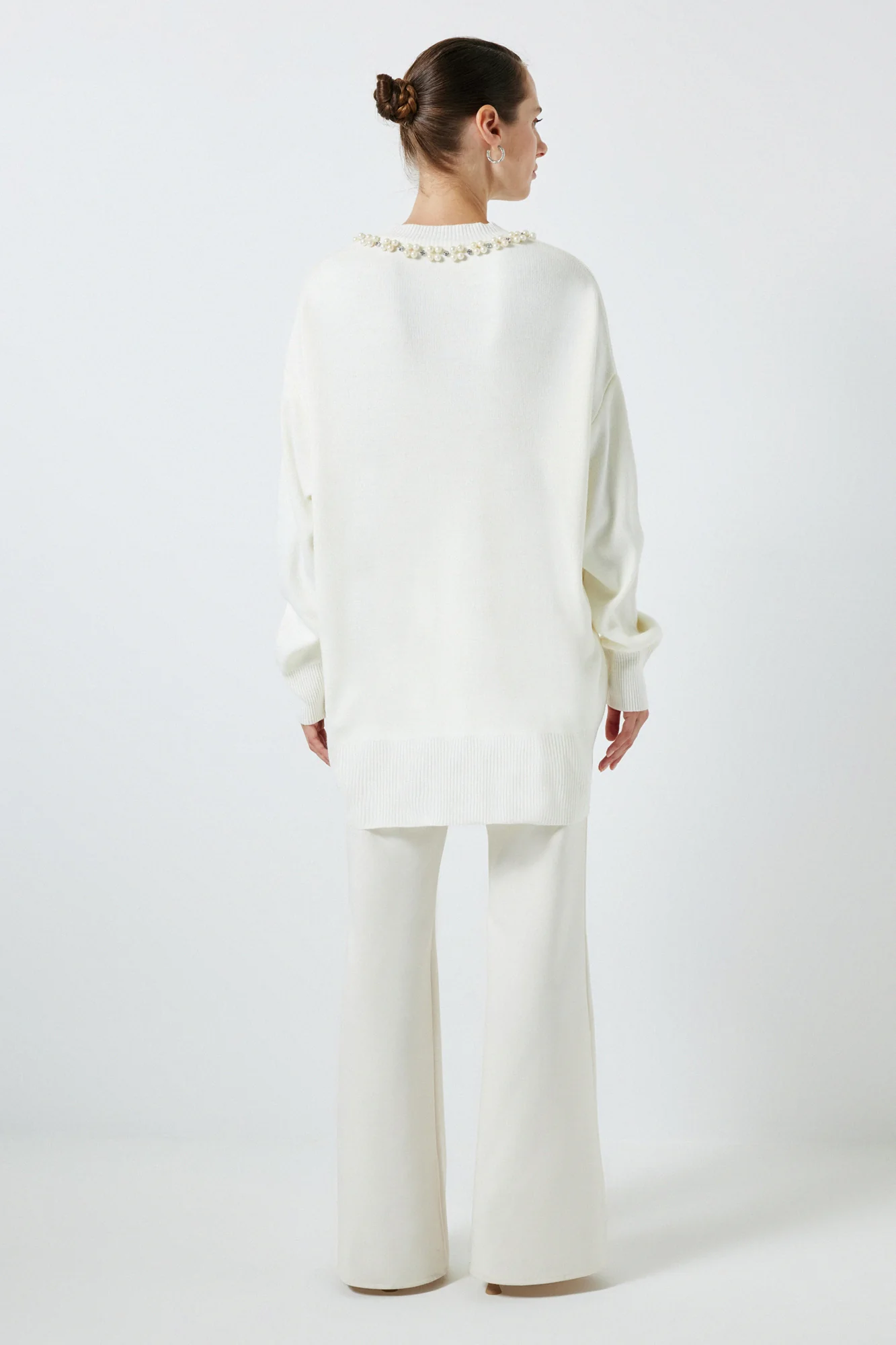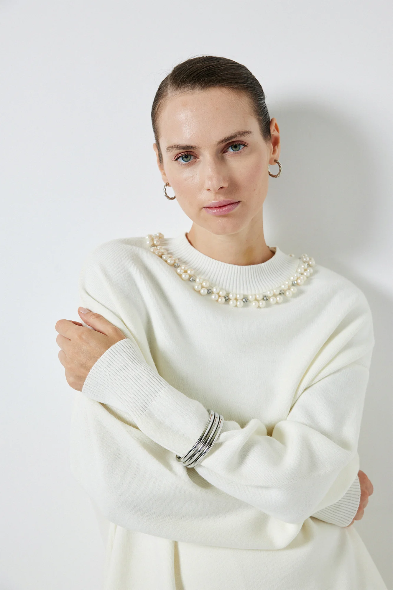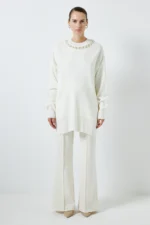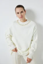 تفاصيل المنتج: رقبة دائرية، أكمام طويلة أكتاف منسدلة، مقاس كبير، تفاصيل لؤلؤية، ملمس ناعم،