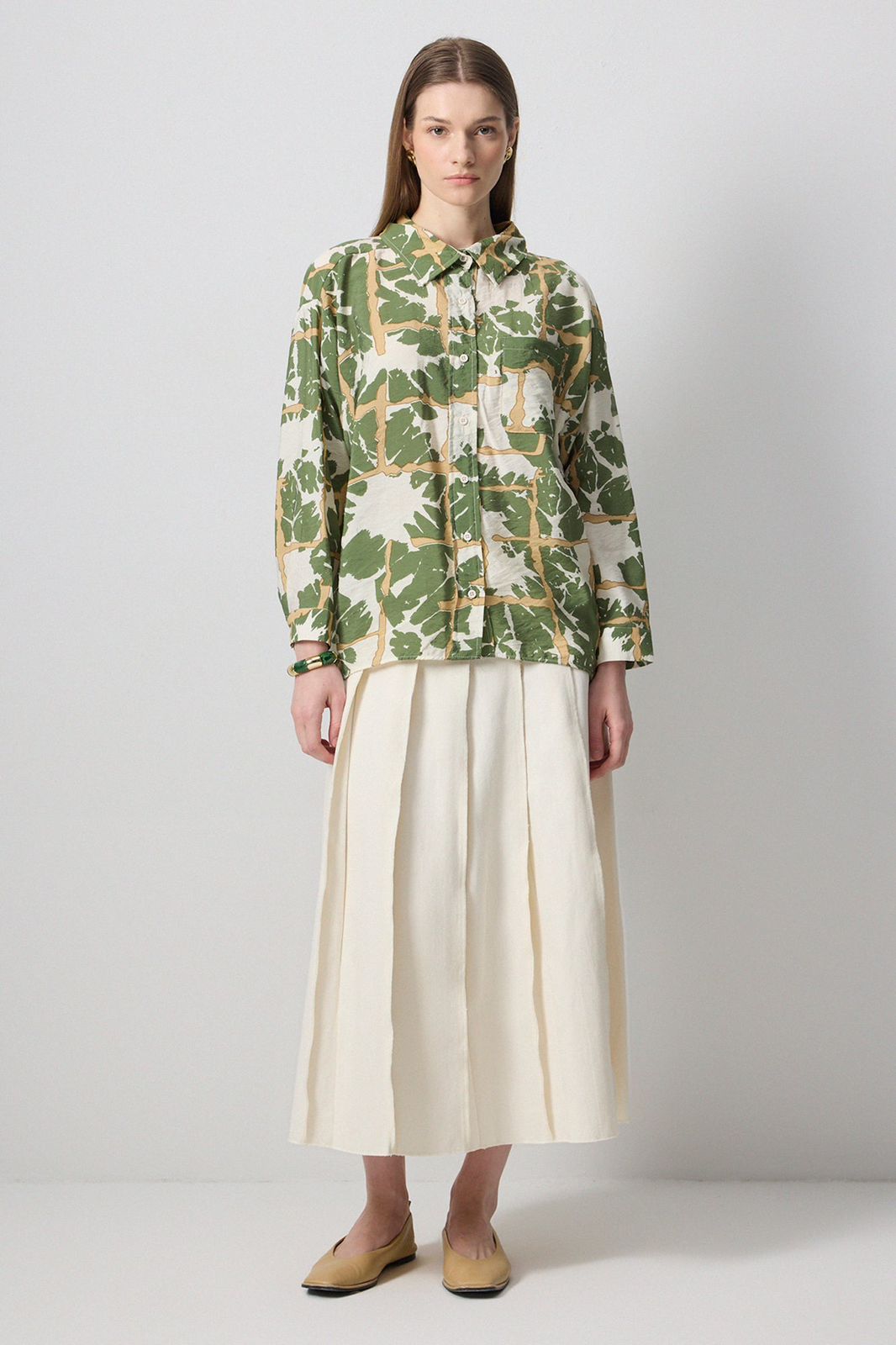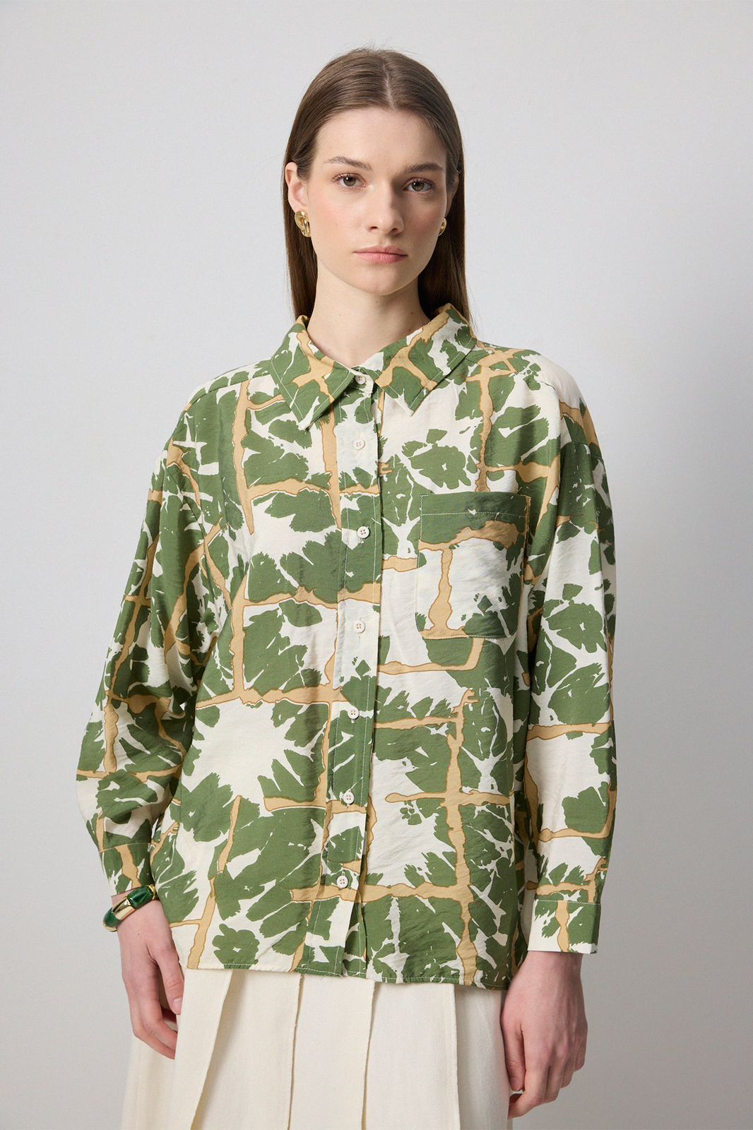 قميص ناعم 100٪ فيسكوز بقصة مريحة وانسيابية لإطلالة أنثوية راقية
