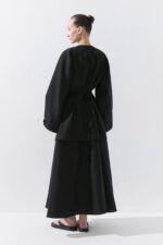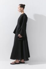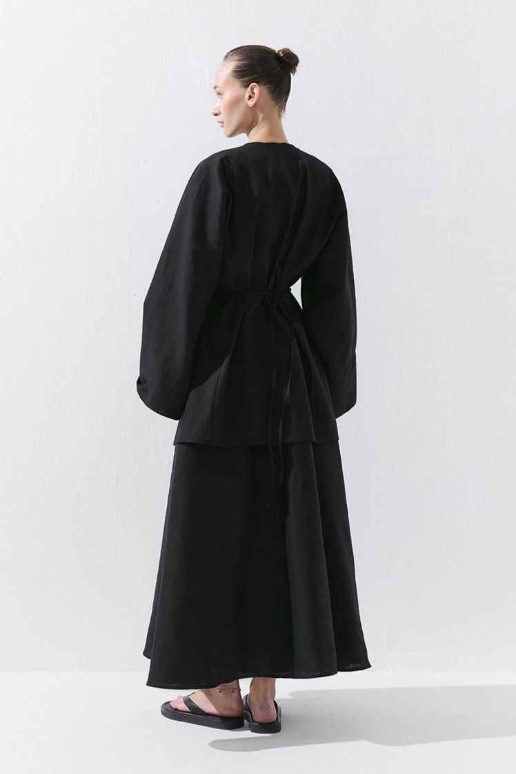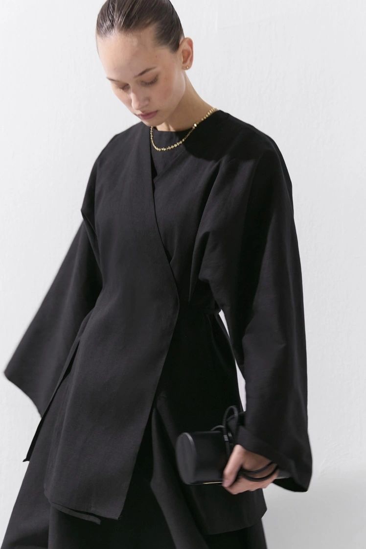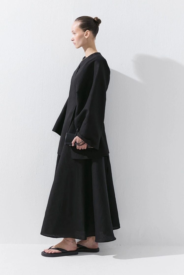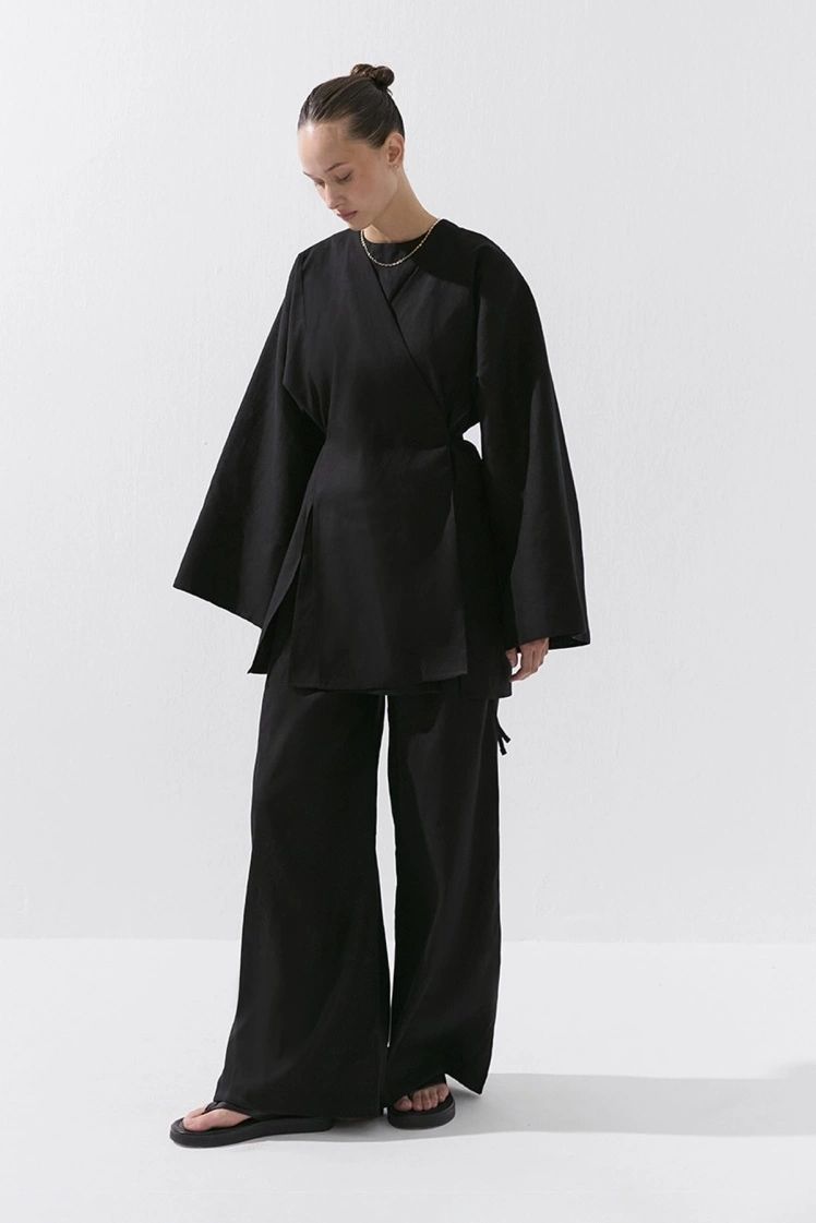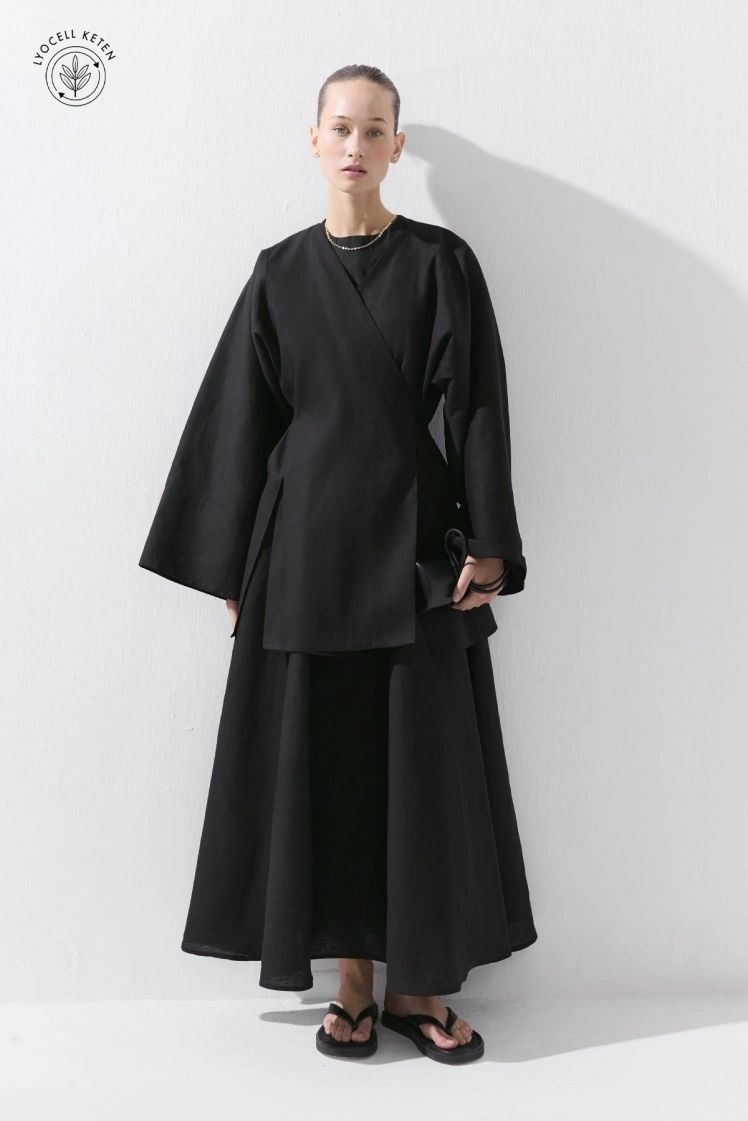 بلوزة سوداء ناعمة بدون أكمام بخامة لايوسل وكتان تضيف لمسة أناقة عصرية وبسيطة.