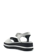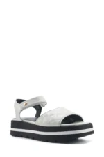 صندل نسائي مسطح من Nine West باللون الأبيض، بتصميم مزخرف وأنيق. يتميز بكعب قصير (1-4 سم) مناسب للارتداء اليومي في فصل الصيف. مثالي للأنشطة الصيفية مثل الخروج إلى الشاطئ.