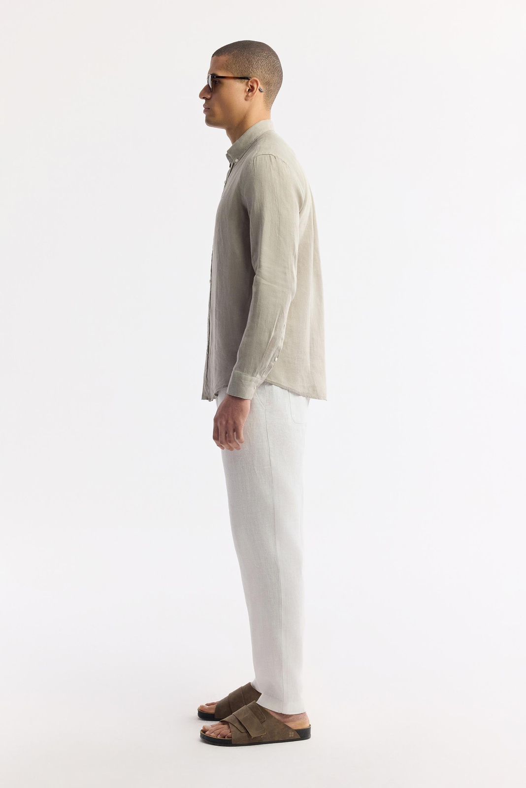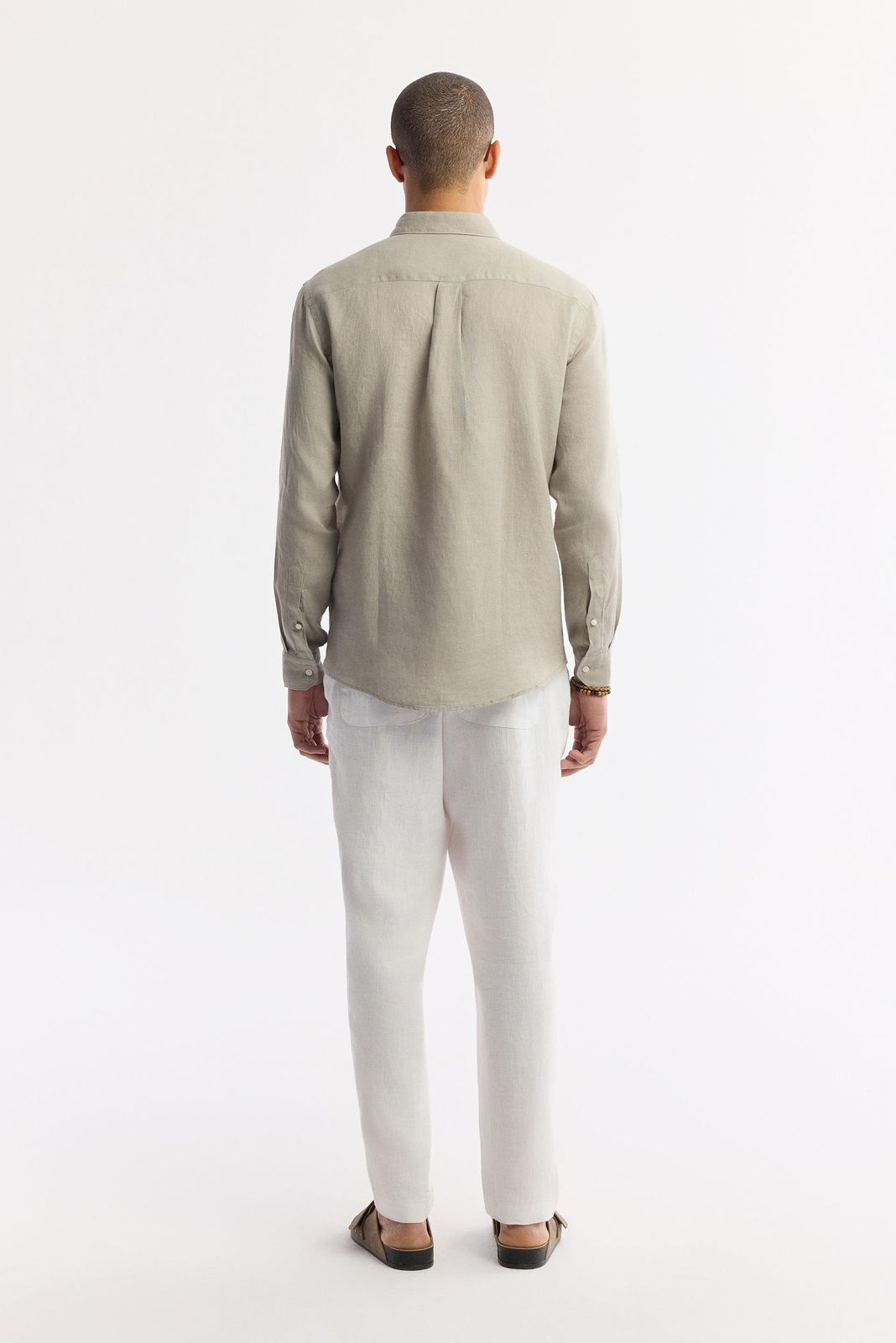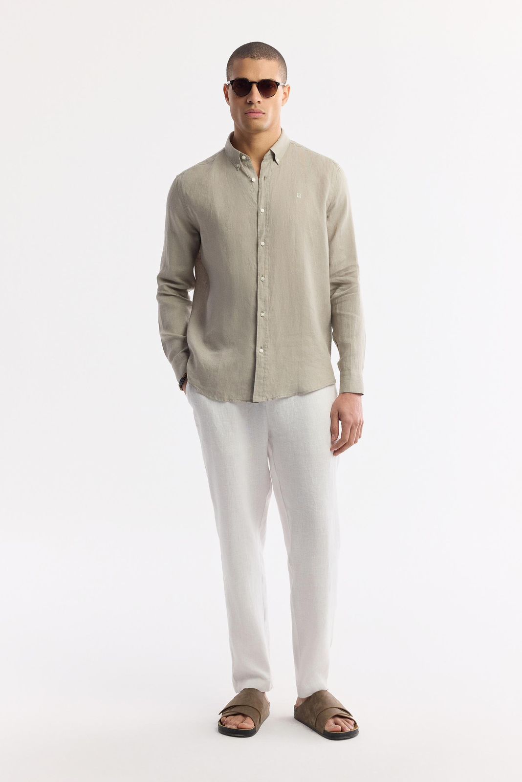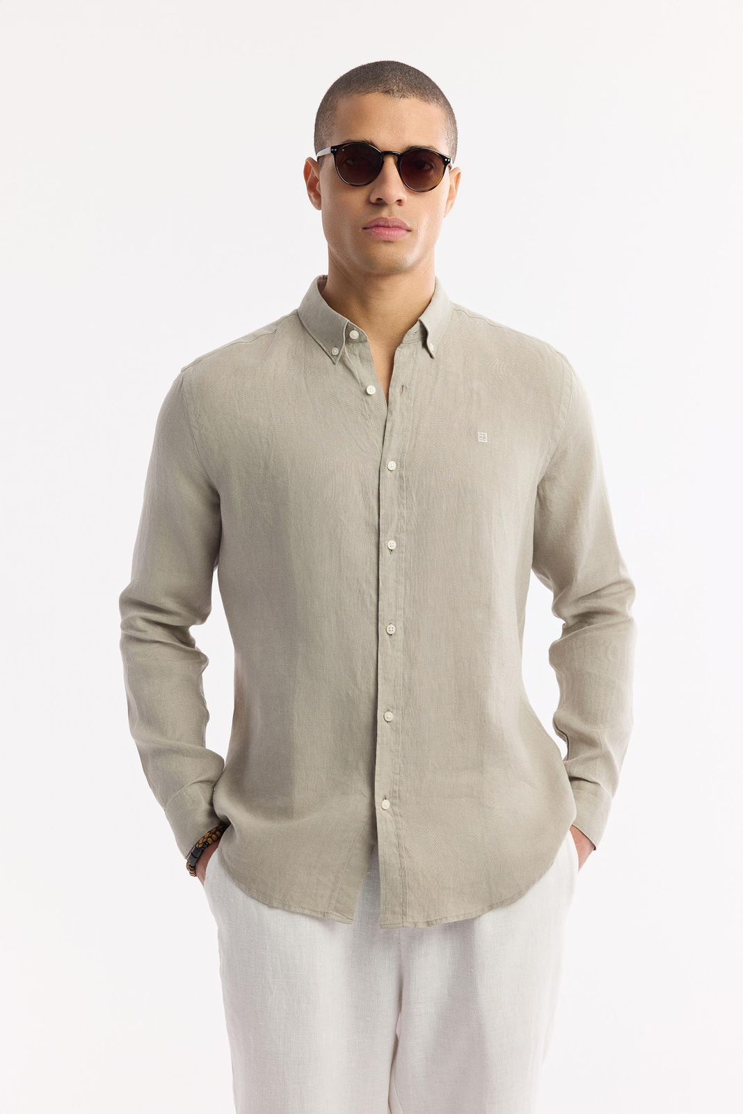 قميص رجالي من الكتان الطبيعي بقصة مريحة، طويل الأكمام وذو ياقة بأزرار، يمنحك انتعاشًا وأناقة طوال اليوم.