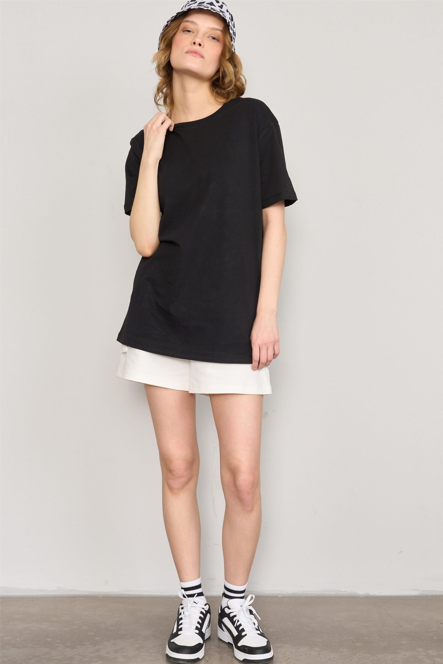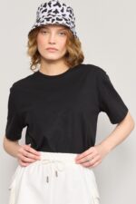 تيشيرت نسائي أسود بياقة دائرية