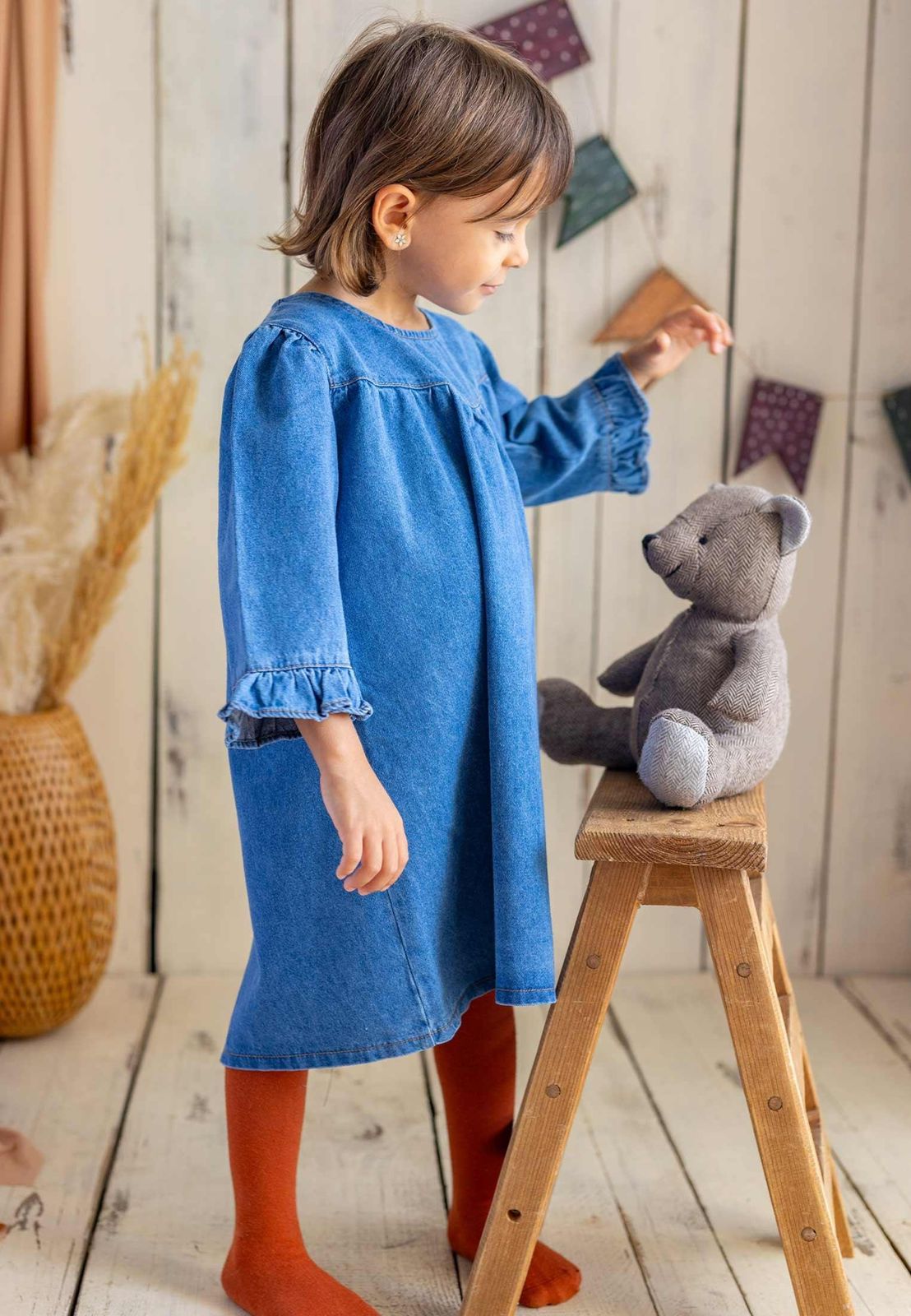 فستان جينز بناتي بأزرار خلفية، مصنوع من قطن 100%، يمنح طفلتك راحة وأناقة يومية.