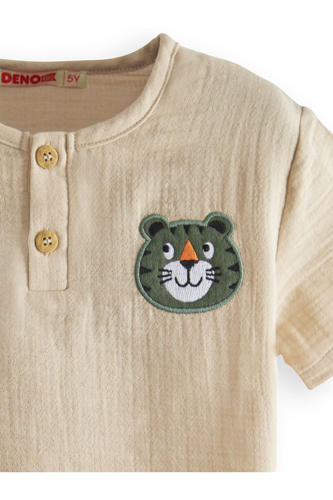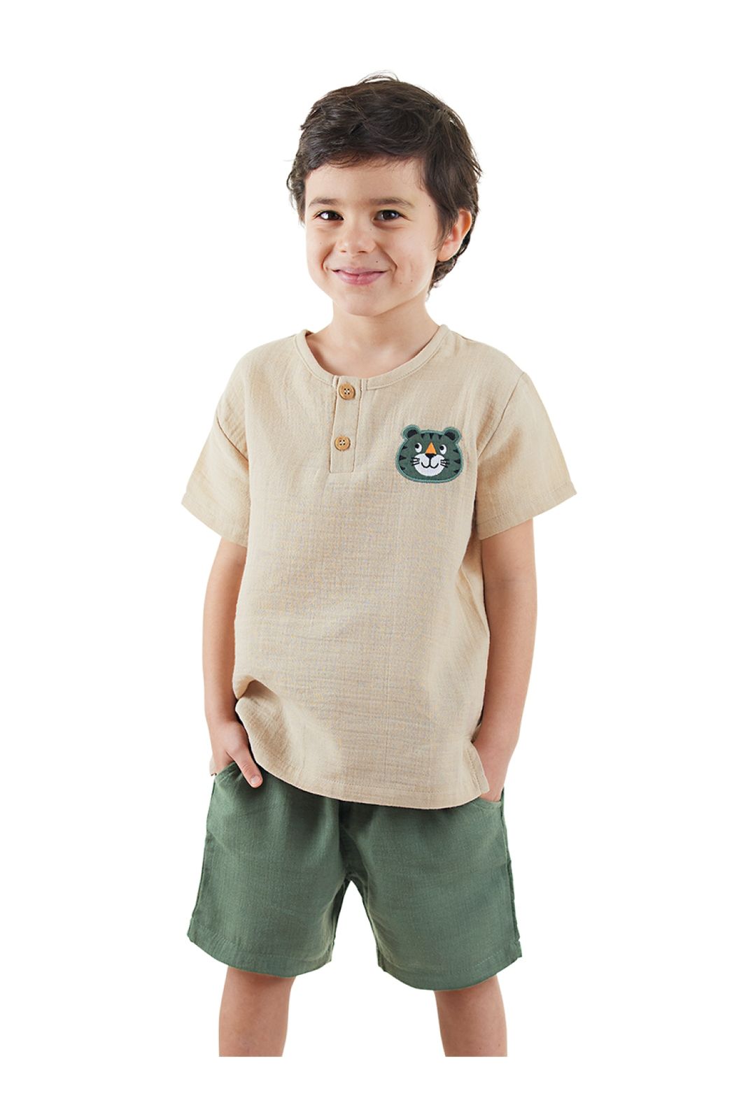 طقم صيفي أولادي مكون من تيشيرت بطبعة نمر وشورت موسلين خفيف لإطلالة مفعمة بالحيوية