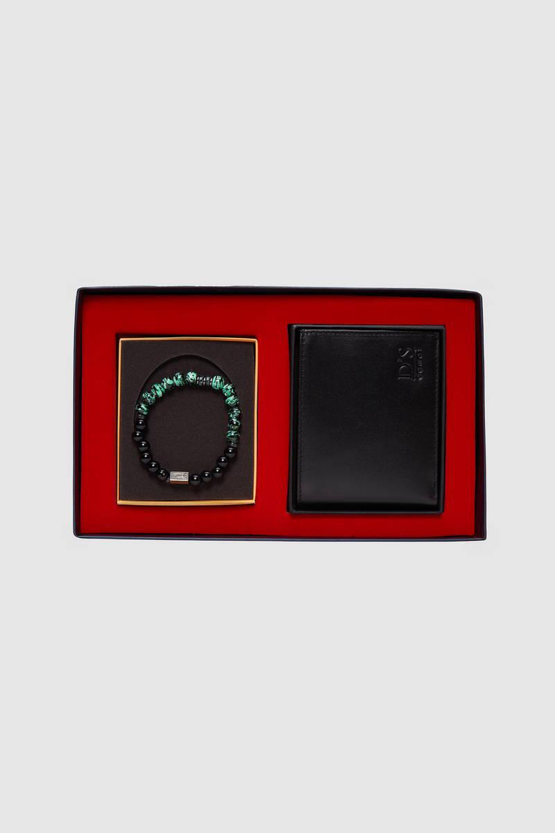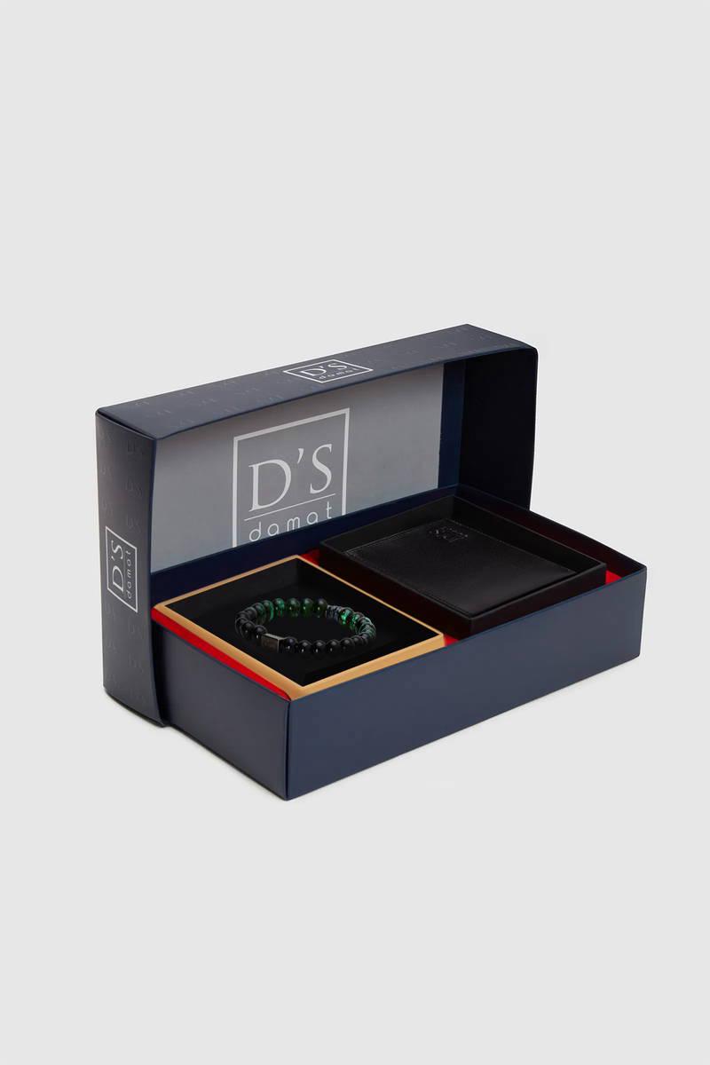 طقم إكسسوارات أنيق من Ds Damat يضم محفظة وسوار ضمن علبة فاخرة، مثالي للإهداء أو الاستخدام اليومي.