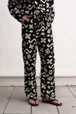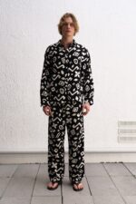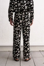 بنطلون رجالي باللون الأسود مزين بنقوش
