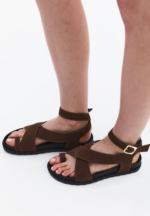 صندل صيفي من Xoox بلون بني مع إبزيم أنيق، يجمع بين الراحة والتصميم العصري لإطلالة يومية مميزة.