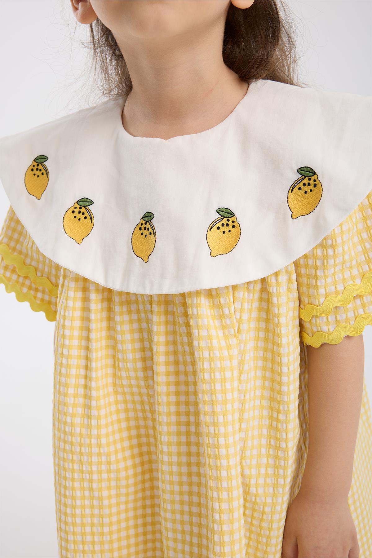 تصميمه المميز بياقة مطرزة وتفاصيل منقطة تضفي طابعًا مرحًا وأنيقًا في آنٍ واحد.
