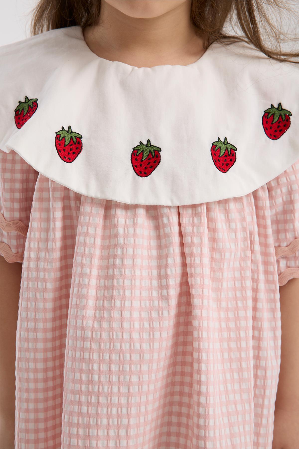 التطريز الأنيق على الياقة والتفاصيل المنقطة تضفي عليه طابعًا مرحًا وراقيًا، ليكون الخيار المثالي لكل من الإطلالات اليومية والمناسبات الخاصة.