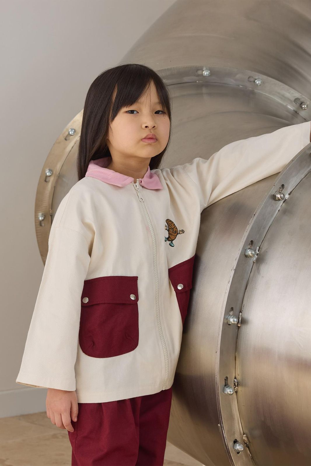 جاكيت أطفال أنيق ومريح مصنوع من قطن جبردين 100%، بتفاصيل مطرزة وجيوب عملية، مثالي لكل الأوقات.