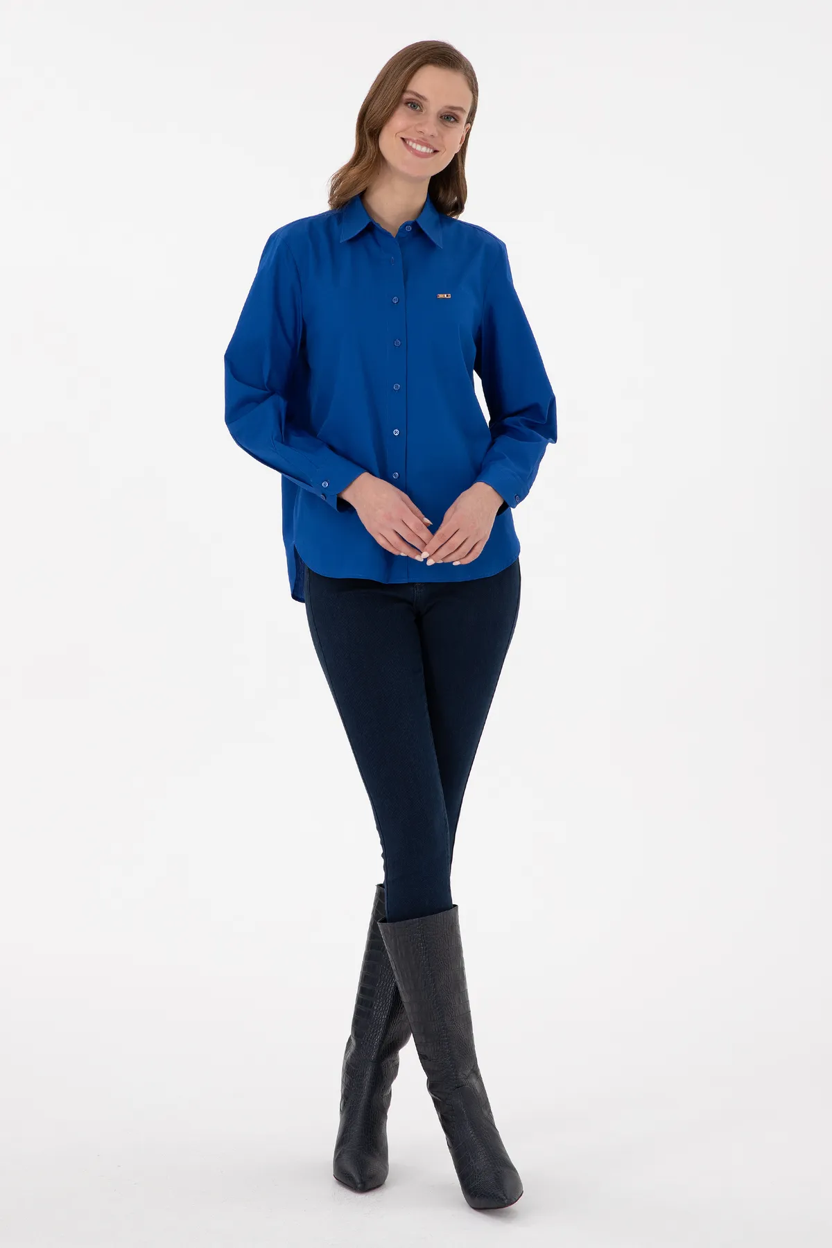 قميص نسائي بأكمام طويلة وياقة كلاسيكية